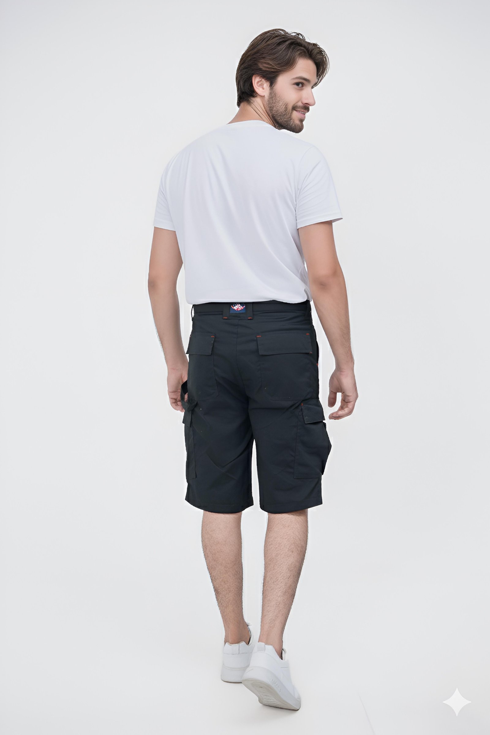 MEN'S WORKWEAR CARGO SHORTS BLACK & WHITE T-SHIRT